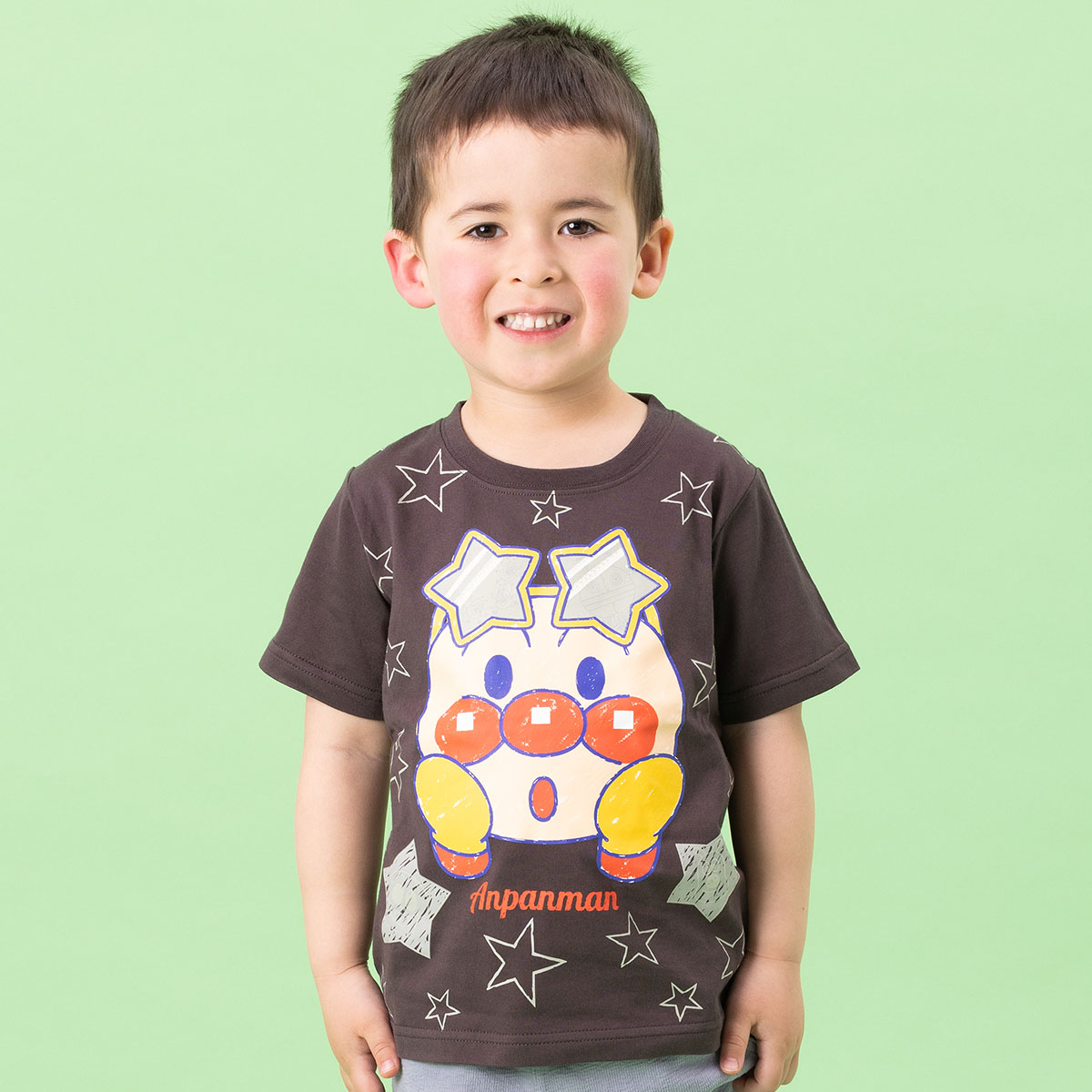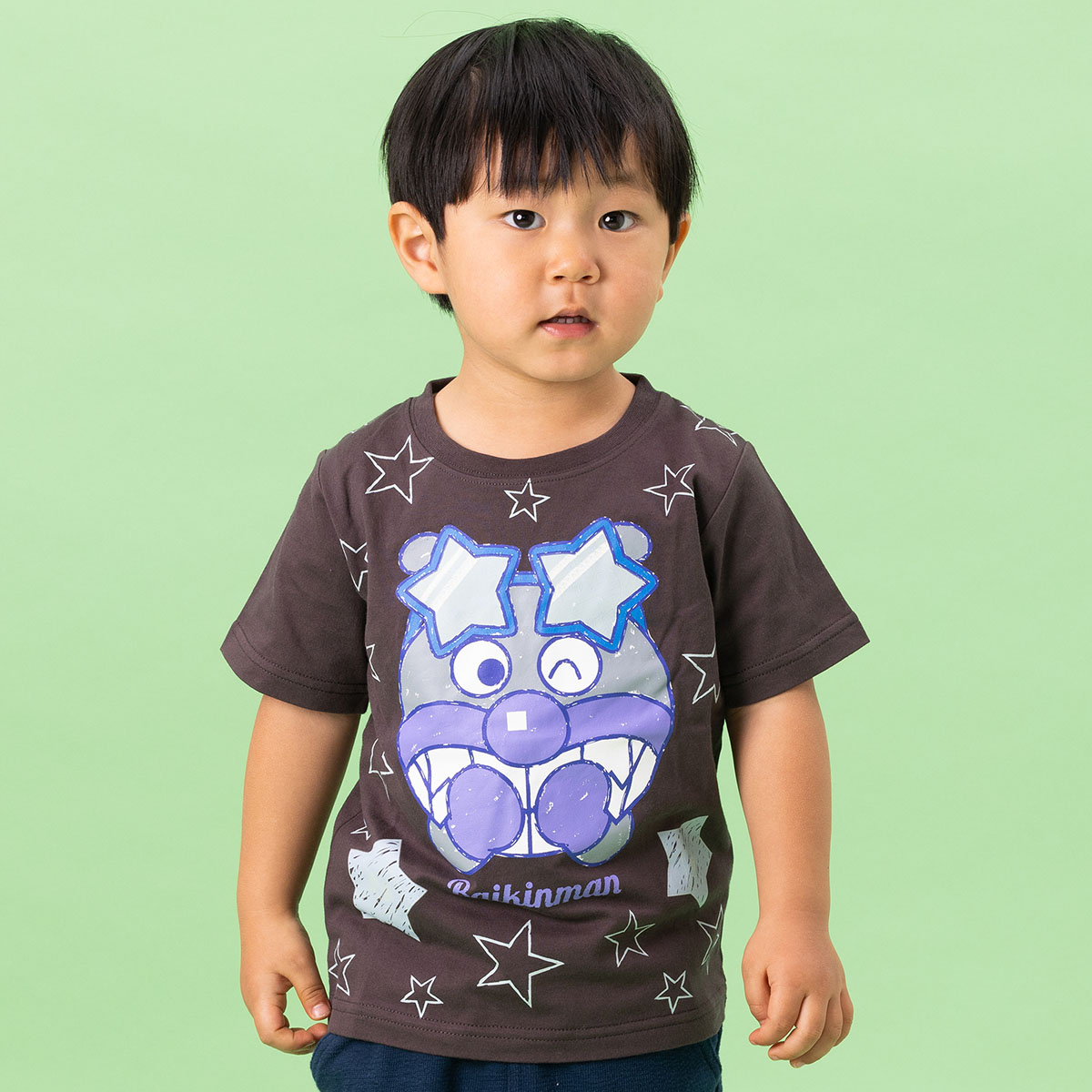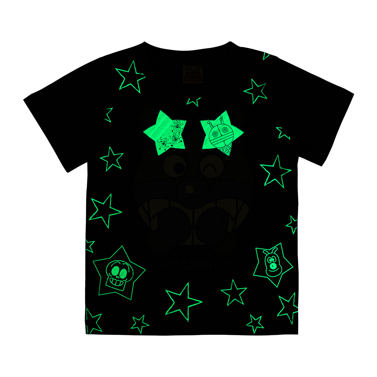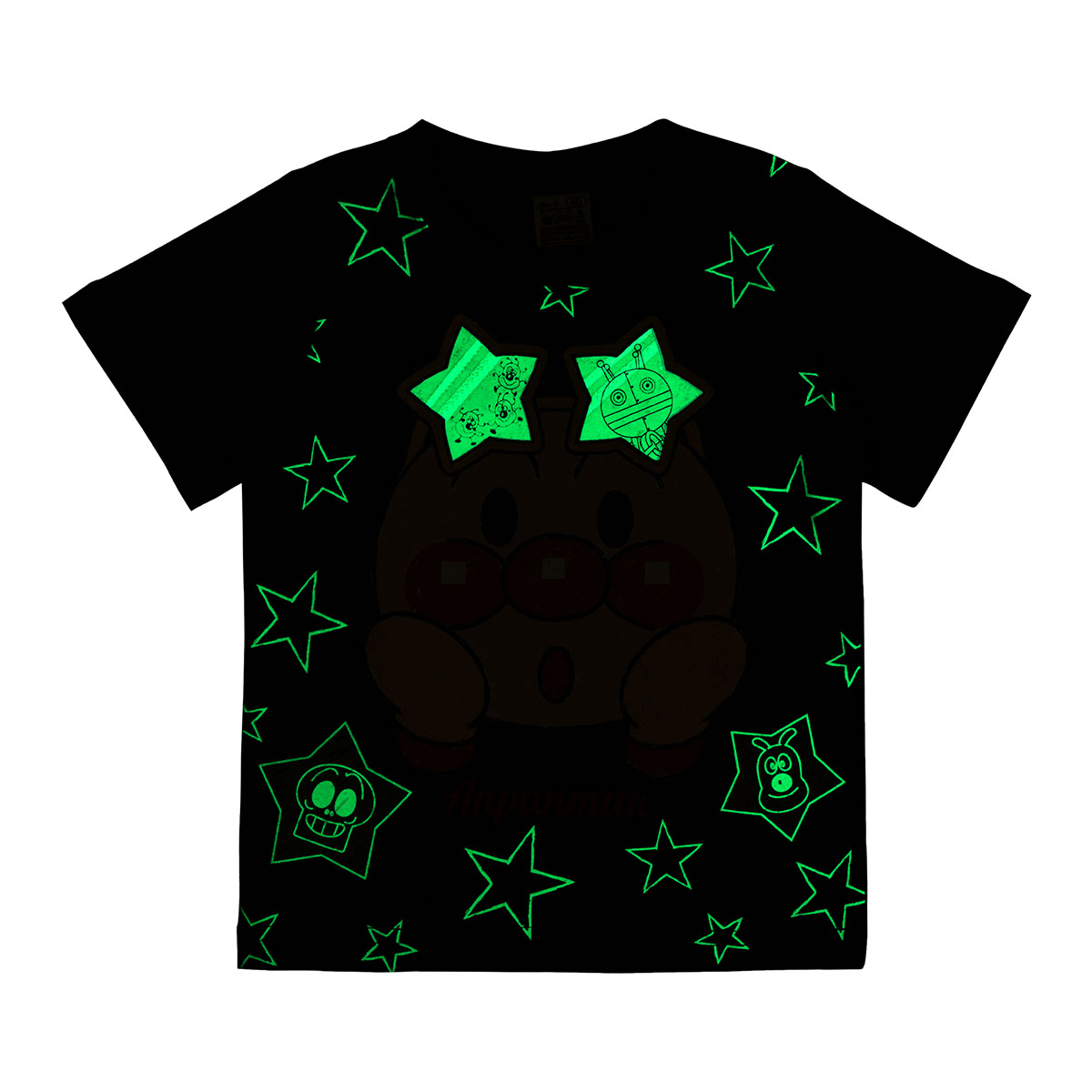 アンパンマンとばいきんまんのお顔を大きくプリントした、暗闇で光る半袖Tシャツ!
