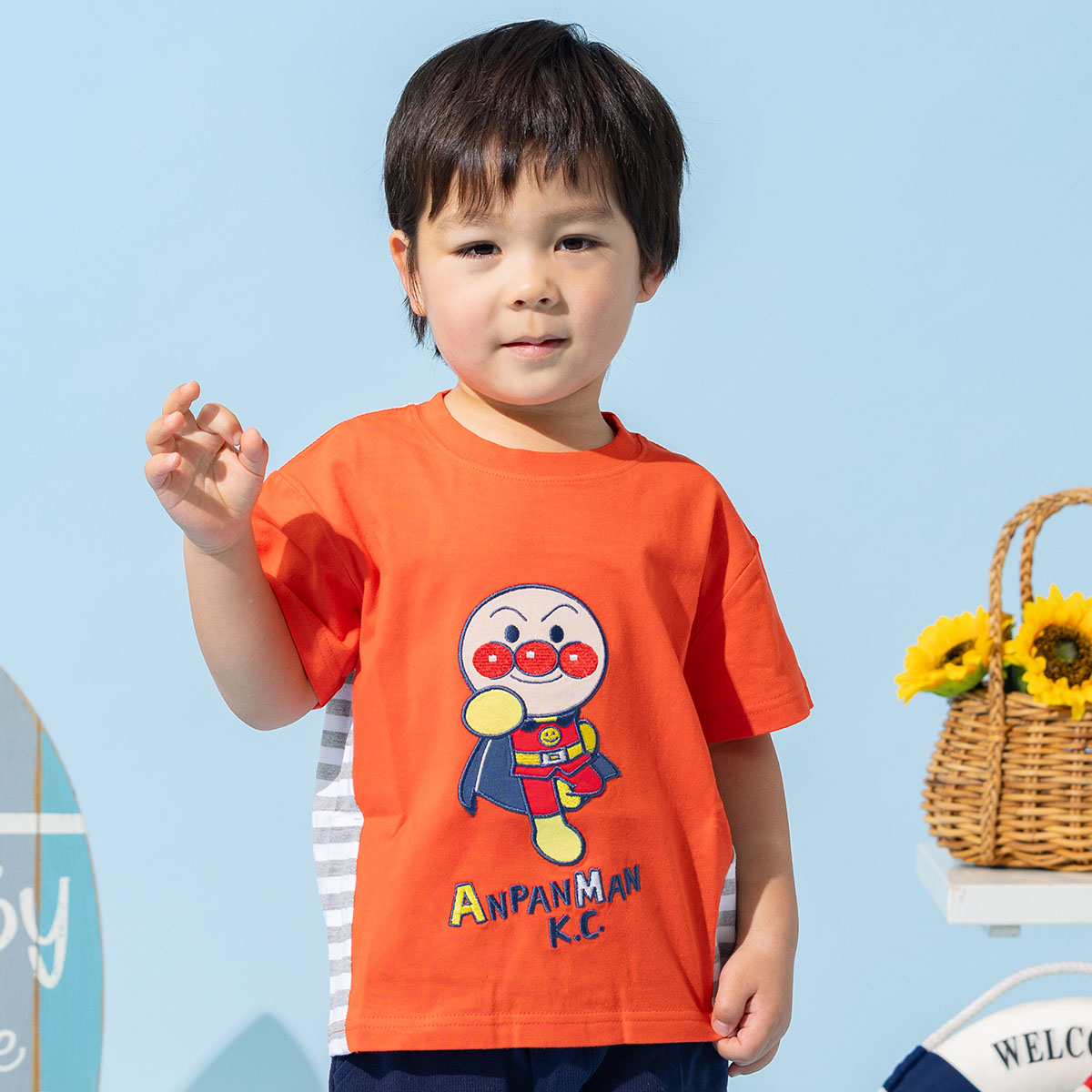 オレンジ配色はアンパンマン、杢グレー配色にはだだんだんが全身で大きくアップリケされています。